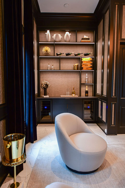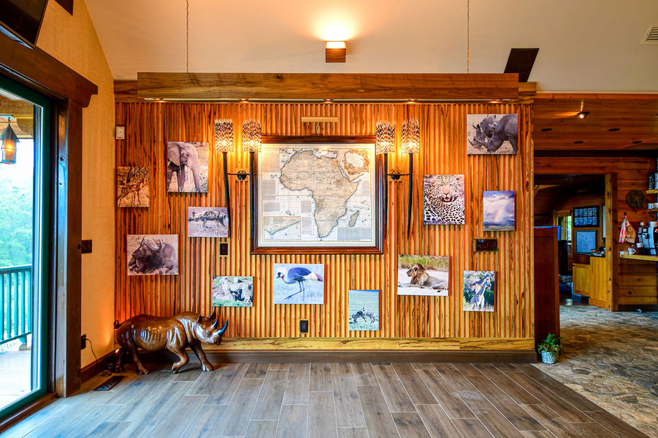 Coffered ceiling and random width T&G wall coverings with custom moldings